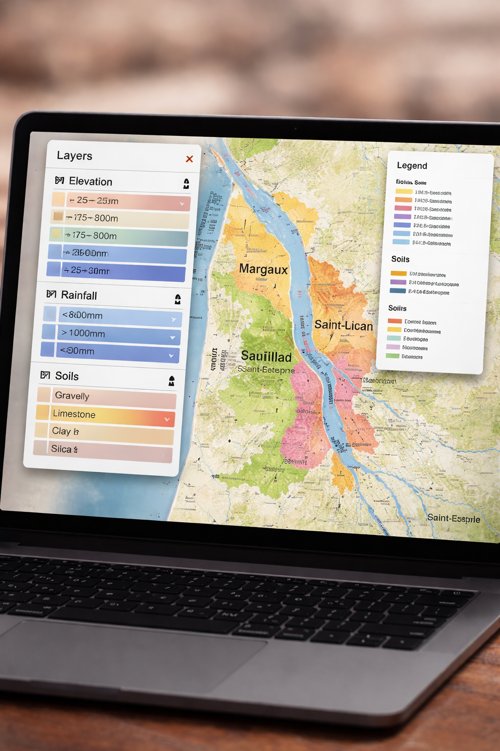 Download layered, print-ready wine maps, terroir overlays, and teaching assets—built from real GIS data and designed for clarity.